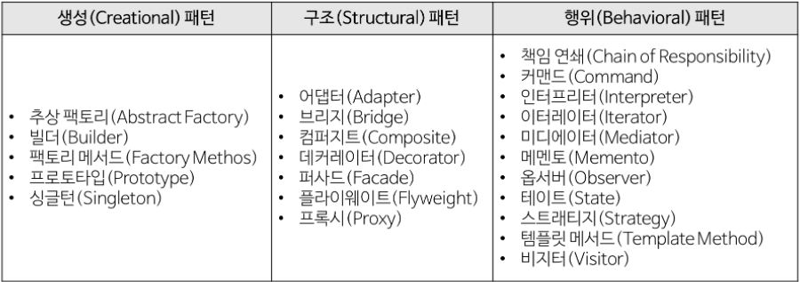 디자인 패턴은 목적에 따라 크게 세 가지로 나뉜다.