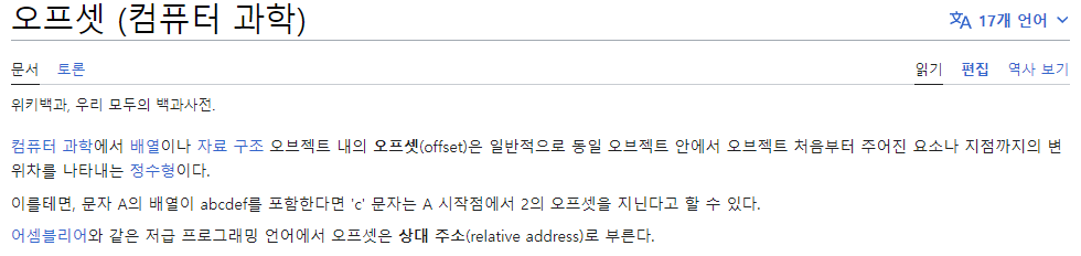 Offset은 게임 개발할 때 많이 쓰이는 단어이기도 하다.