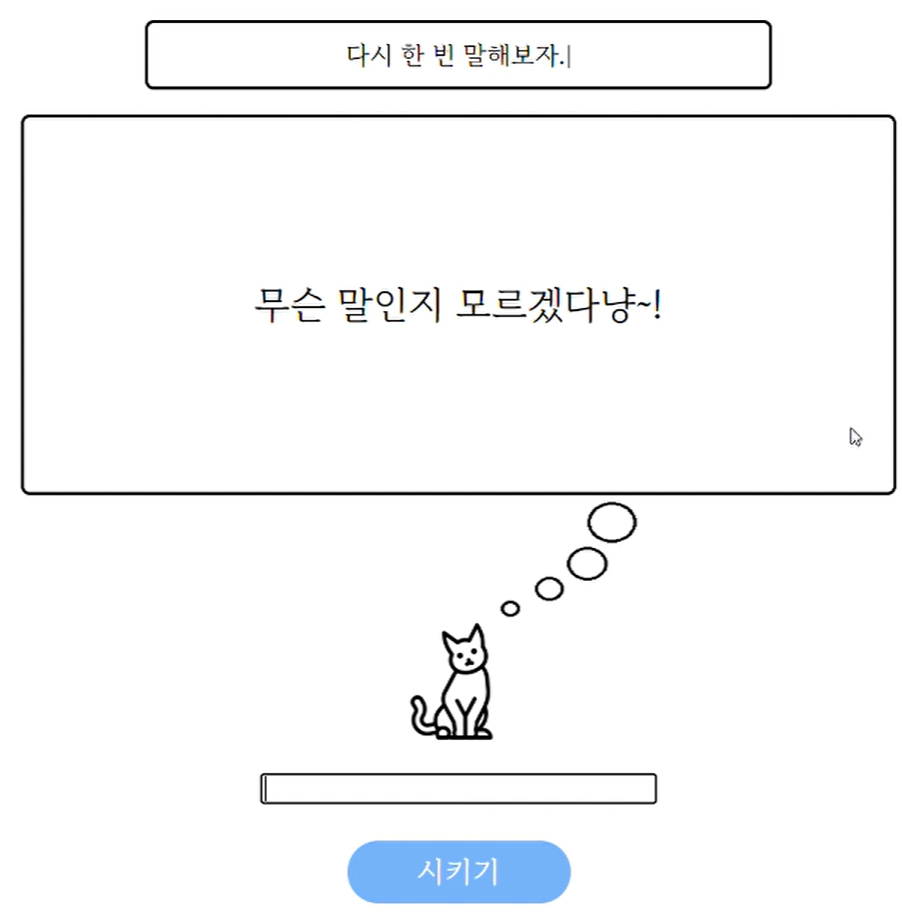 고양이가 못알아 들을 때의 상황을 for문 안에 구현했었는데 typewriter CDN을 쓰게 되면서 for문 밖으로 빼고 if문으로 분기했어요